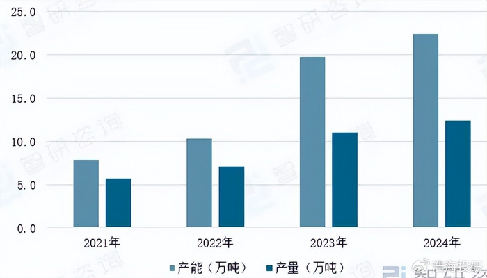 PVDF价格上涨,也迎来了更多企业的进入和扩产。因此,随着在建项目的相继投产,新增产能陆续涌入市场,PVDF供求关系迅速发生转变。到了2024年,我国PVDF产能已经超过了20万吨/年,同比增长了10%,产量也到了12.4万吨,但是产能利用率比较低。