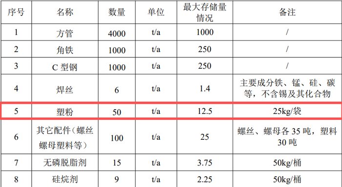 由上表可知,本项目理论上所需塑粉用量为46.171t/a,环评申报量为50t/a,塑粉用量合理。